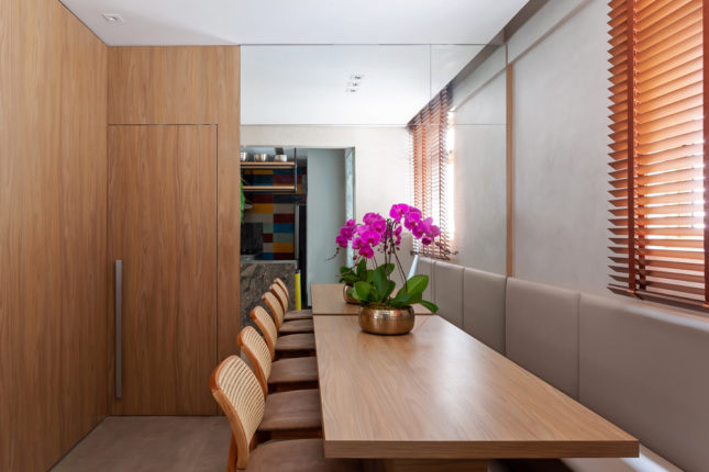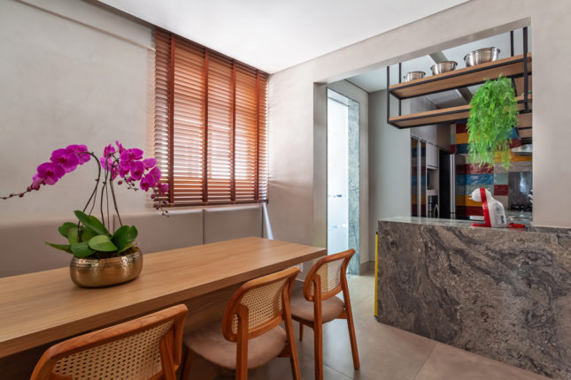 Projeto em que juntamos a paixão dos clientes por cores, com a nossa por diferentes composições, para conceber um lar bem alegre, vivo e aconchegante. Além das cores, integração foi a “palavra-chave” deste apartamento de 82 m², para proporcionar uma sensação de amplitude, abundância de luz natural e um layout mais interessante e convidativo.