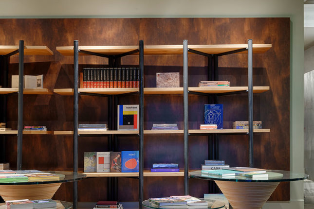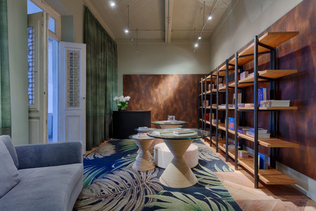 Ler e relaxar junto ao seu livro preferido foi a premissa deste espaço, que contou com móveis autorais, assinados pelo escritório, em sua composição. Pensados para valorizar a arquitetura do edifício onde foi inserido, eles também ganham destaque com o tapete em estampa tropical.